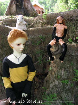 Actually, I just love taking pictures of the boys around trees and natural surroundings. I wonder if it might have to do with the fact that I've been surrounded by trees all my life (though not we don't actually live in the forest among them). Razkil had first appeared to me in a dream in a forest. ^_^