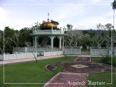 Down the red brick road to the rest hut where we can find out about the Sultan's grave.