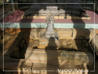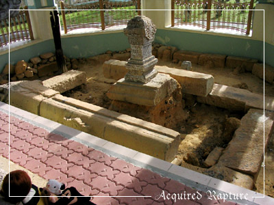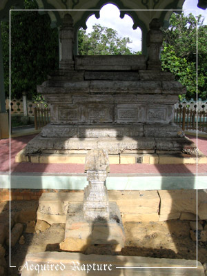 Here's a better look of the...tomb, I think you'd call it? O_o Personally, I have no idea why it's so large. It have a feeling it's hollow inside. Because I bet if I'd tried, there's a slab there that I could probably have been able to lift up. (It does look as if that's been done before. I looked and could see that it was hollow inside.) I'm very pleased they built such a simple and beautiful structure around this tomb.