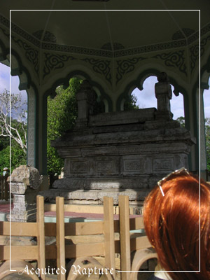 And now we enter from the back to take a closer look at the tomb. There's a gate too, which isn't locked. And appallingly, on the left, which I didn't capture, is an office desk and chair. Hell. -_- Mars said it might be for the security guard, if there was one. WTF. Put it on the grass or something. T_T Things like this just spoil stuff. *sigh*