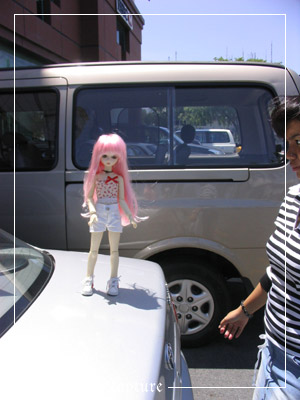 | This is outside one of the shopping centres in Miri. Mars wanted to stand Rathi on the car and take a pic of her.