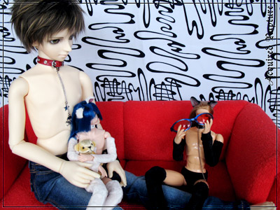 Ferrahn didn't have his cat in any of the previous pictures with the red sofa; and Nat's comment about whether he'd gone on holiday recently (since he hadn't been pictured at all) prompted these pics.