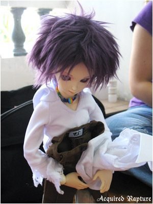 | Last picture! Ryu is holding on to the pants Galad had borrowed. Mars had wanted to buy them, but we couldn't sell them because they were one of the few pants Kamahn didn't mind his Hyuui wearing. Not to mention, they had been bought especially for him. ^_^