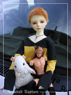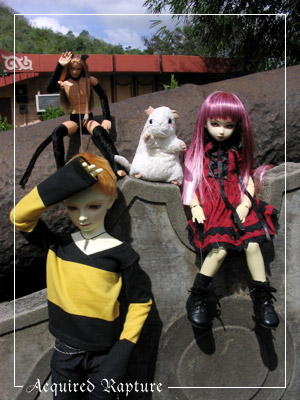 When we'd mentioned a photo-taking trip the last time Rathi was here, Ferrahn and Errand had quickly said they would be coming along. Kamahn, of course told us not to be ridiculous. As if he, the brat, would be interested in being photographed around places. *rolls eyes* But on the day itself, I had planned to only bring Razkil because I knew it would be hard juggling more than one body. But his sneaker-encased feet would not allow the Volks violin case to shut properly. And I was afraid of the damage to his lil feet, so I changed carrying bags. And of course, with the bigger bag, Ferrahn and Errand could actually fit and come along in the physical. Silren as it was just came along without his physical shell.