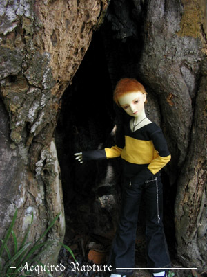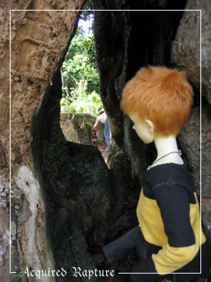 Here's another tree with a hole in its trunk. Spiderwebs everywhere. *_* And Razkil wouldn't balance on the unsteady ground so I had to lean him against the trunk. *_*
