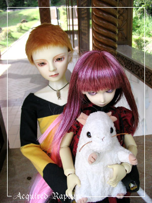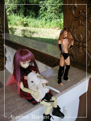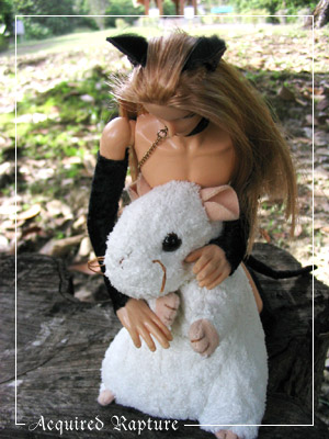 This is amusing. *laughs* While I'd been taking pics of Razkil and the tree, Mars had sat Errand on Ferrahn. *laughs* And then she made Ferrahn strangle Errand for it. *laughs* Errand wasn't amused as it was Mars' idea, not his to put his stuffed body on Ferrahn. But Ferrahn snarled and said the strangling was deserved either way.