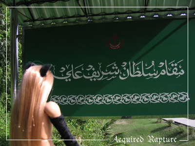 Ah..here's the sign to the place actually. It's in fancy Jawi and it reads 'Makam Sultan Syarif Ali'. I had asked Mars what it meant at first, and when she said it was Jawi, I had attempted to read it myself. This was when I realised for the first time that some signs like this were just Jawi script that I could read with a lot of accents thrown in, and that I could probably grasp bits of it if I tried hard.