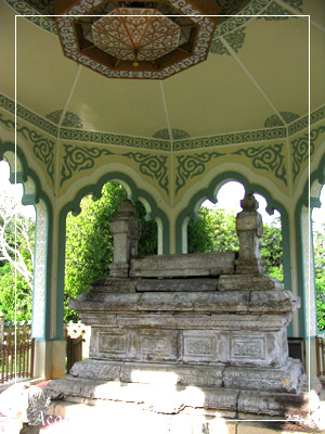 And now we enter from the back to take a closer look at the tomb. There's a gate too, which isn't locked. And appallingly, on the left, which I didn't capture, is an office desk and chair. Hell. -_- Mars said it might be for the security guard, if there was one. WTF. Put it on the grass or something. T_T Things like this just spoil stuff. *sigh*