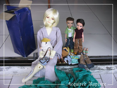Look who else came in the mail! ^_^ Seph: Railen and Zev are home from Mich's place. ^o^ Razkil: They came with a lot of things too. ^_^ Seph: Yes. And we can have fun unwrapping them! *laughs* Errand: I like the things they come with. Razkil: Errand has a hat now. Seph: *grin* You can keep it if you want, Errand. Thank you for your help, Mich! ^o^