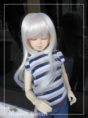 Taking pics of Khairi in his new clothes and his white Hime wig. ^_^ |