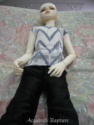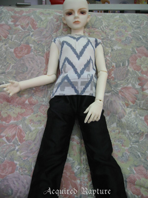 Modelling an incomplete shirt. Bald because I think he's hot without hair. *laughs* omake