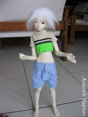 Khairi gets new clothes! ^_^ Razkil: *thinks* Seph says I have to pretend I am giving Khairi his new things. Razkil: Am I doing a good job? Seph: Of course! ^o^ Razkil: His shoes are funny. Draven: That's because all of Razkil's shoes are nicer than Khairi's! Khairi's changing into his new clothes! ^o^ Seph has to help with his pants. Oops. They're a little too big. *_* The pants just barely stay up. Razkil is amused. next page