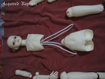 These are the two knotted lengths of elastic string that hold him together.